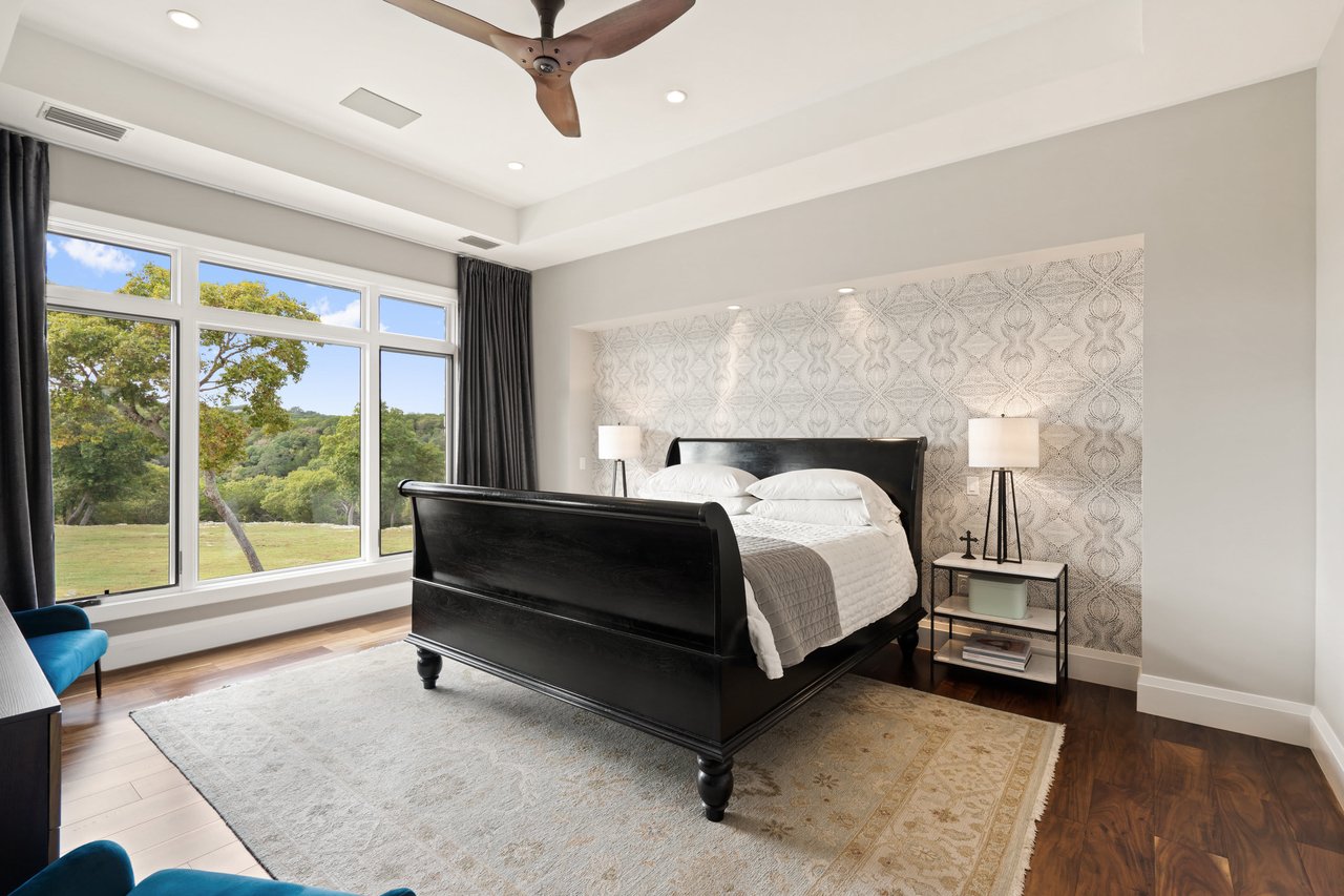The house was graciously designed with "wings". The primary wing features a guest bedroom with en-suite bath, cozy study, and a generous primary bedroom loaded with windows to take in the serene hill country views, and a simply stunning master bath with multi-head walk-in shower, deep soaking tub, his and her quartzite vanities, and ample walk-in closet with natural stone topped island and thoughtful storage options.