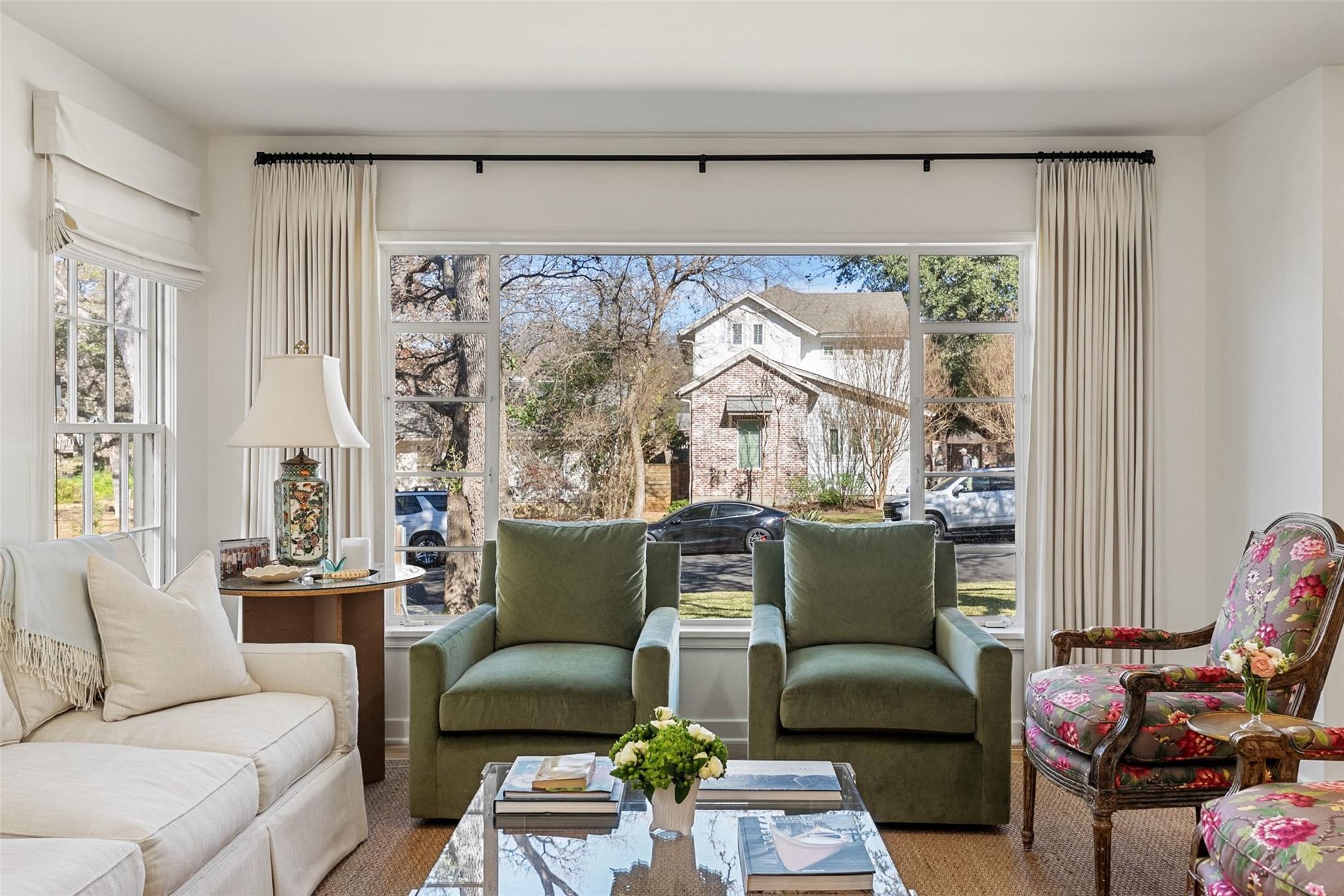 Outdoors, the reimagined backyard serves as a private retreat with updated landscaping, a stone patio, backyard lighting, and a recently installed sprinkler system. Limestone rock borders along the driveway add to the home's curb appeal and classic Tarrytown character.