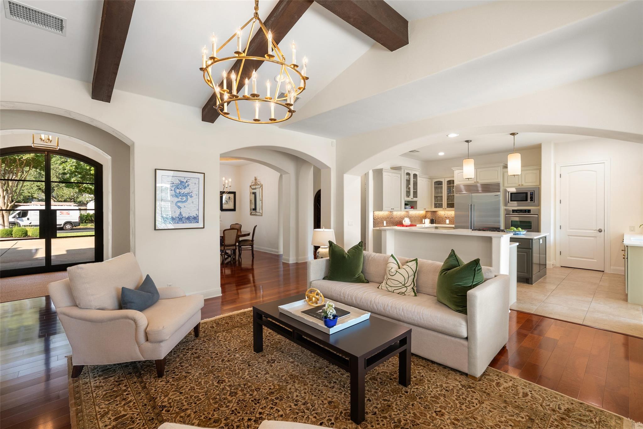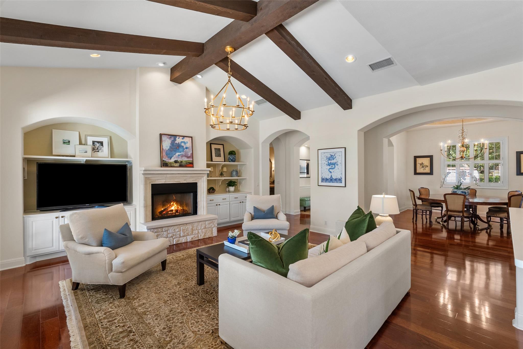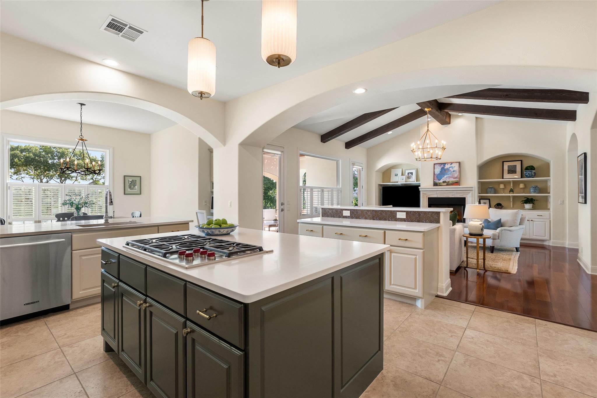 Other Interior Features: Bookcases, Breakfast Bar, Built-in Features, Ceiling Fan(s), Beamed Ceilings, Coffered Ceiling(s), High Ceilings, Tray Ceiling(s), Chandelier, Quartz Counters, Double Vanity, Eat-in Kitchen, Entrance Foyer, High Speed Internet, Interior Steps, Kitchen Island, Multiple Dining Areas, Multiple Living Areas, Open Floorplan, Pantry, Primary Bedroom on Main, Recessed Lighting, Soaking Tub, Walk-In Closet(s)