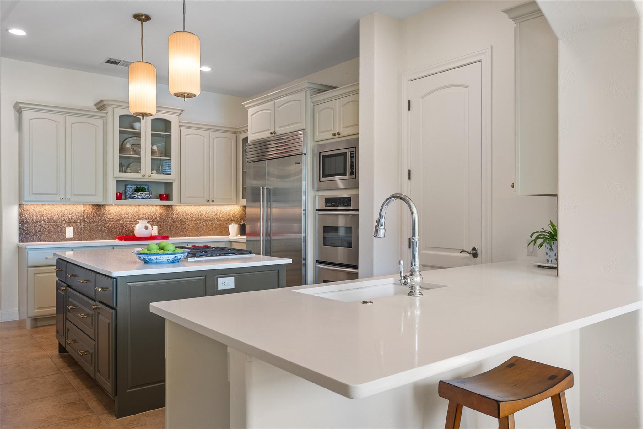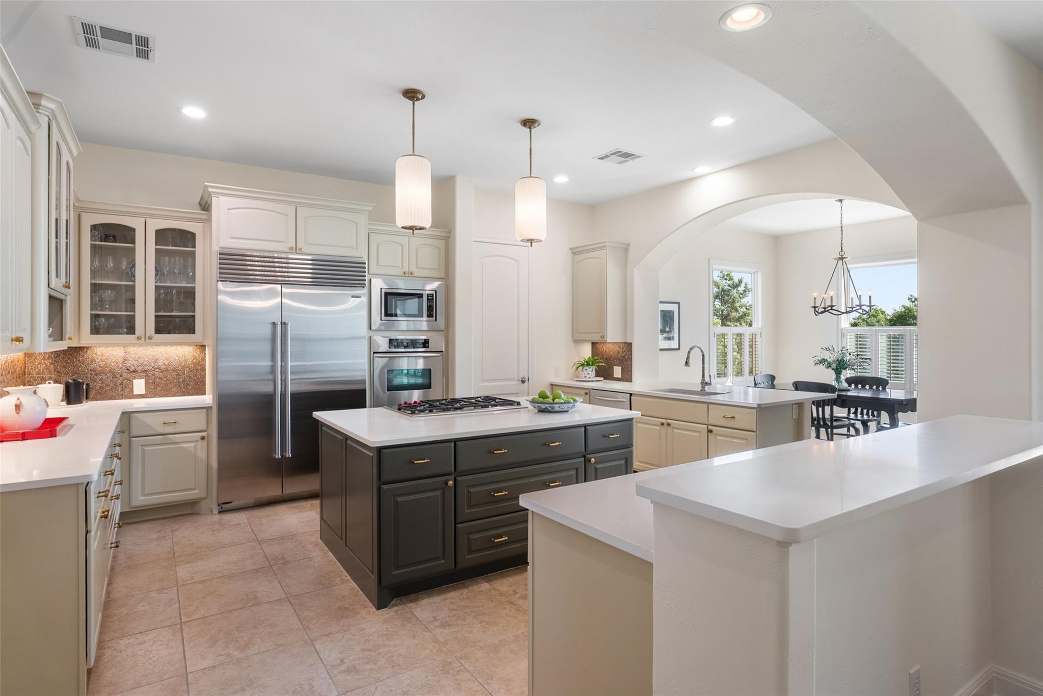 Appliances: Built-In Refrigerator, Dishwasher, Disposal, Exhaust Fan, Gas Cooktop, Microwave, Electric Oven, Double Oven, Range, Stainless Steel Appliance(s), Gas Water Heater, Wine Refrigerator