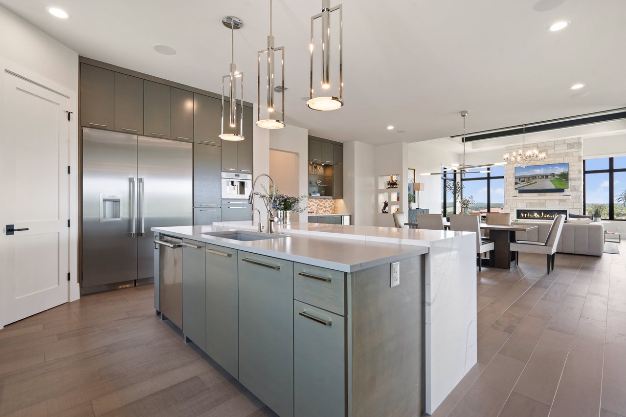 Entertainment awaits on the lower level, where a spacious game room, complete with a wet bar and wall of windows, opens onto covered decks with a fireplace. Step outside to the iconic negative edge pool and spa, or dine alfresco on the upper-level covered deck with its own outdoor kitchen.